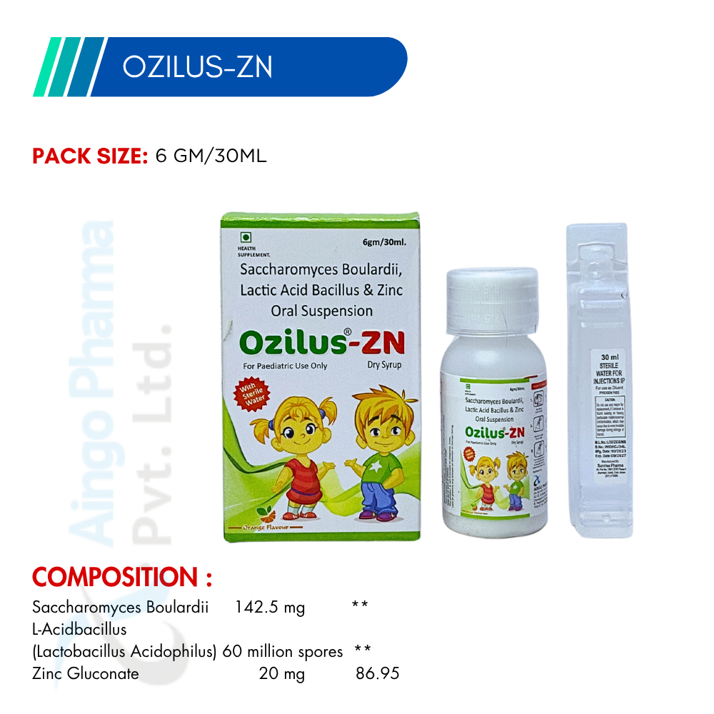 - Ozilus-ZN is a pediatric oral suspension combining Saccharomyces Boulardii, Lactic Acid Bacillus, and Zinc Gluconate. It restores gut flora balance, relieves diarrhea, and improves digestion. Especially […]