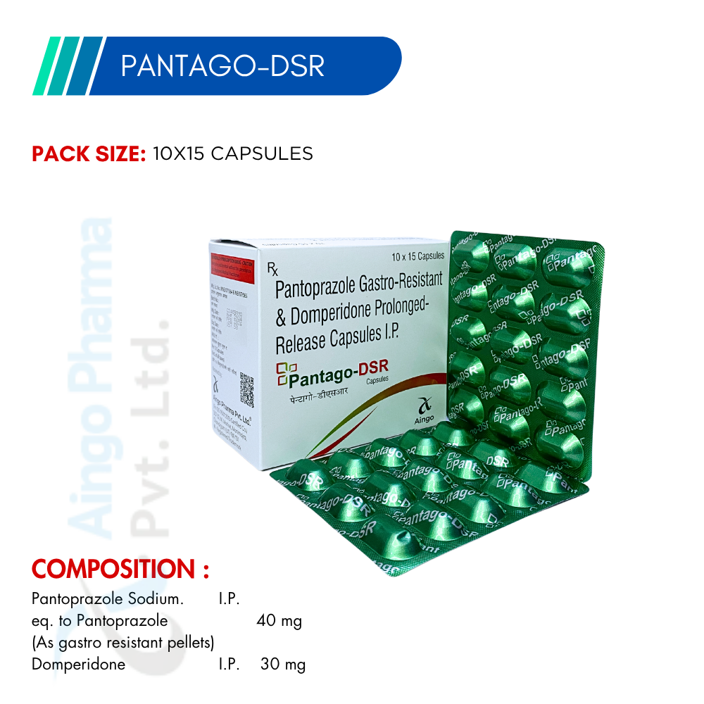 - Pantago‑DSR is formulated for extended gastroprotection with Pantoprazole Sodium Sesquihydrate IP 40 mg (enteric‑coated) and Domperidone IP 30 mg (10 mg immediate release + 20 mg sustained release). This combination […]