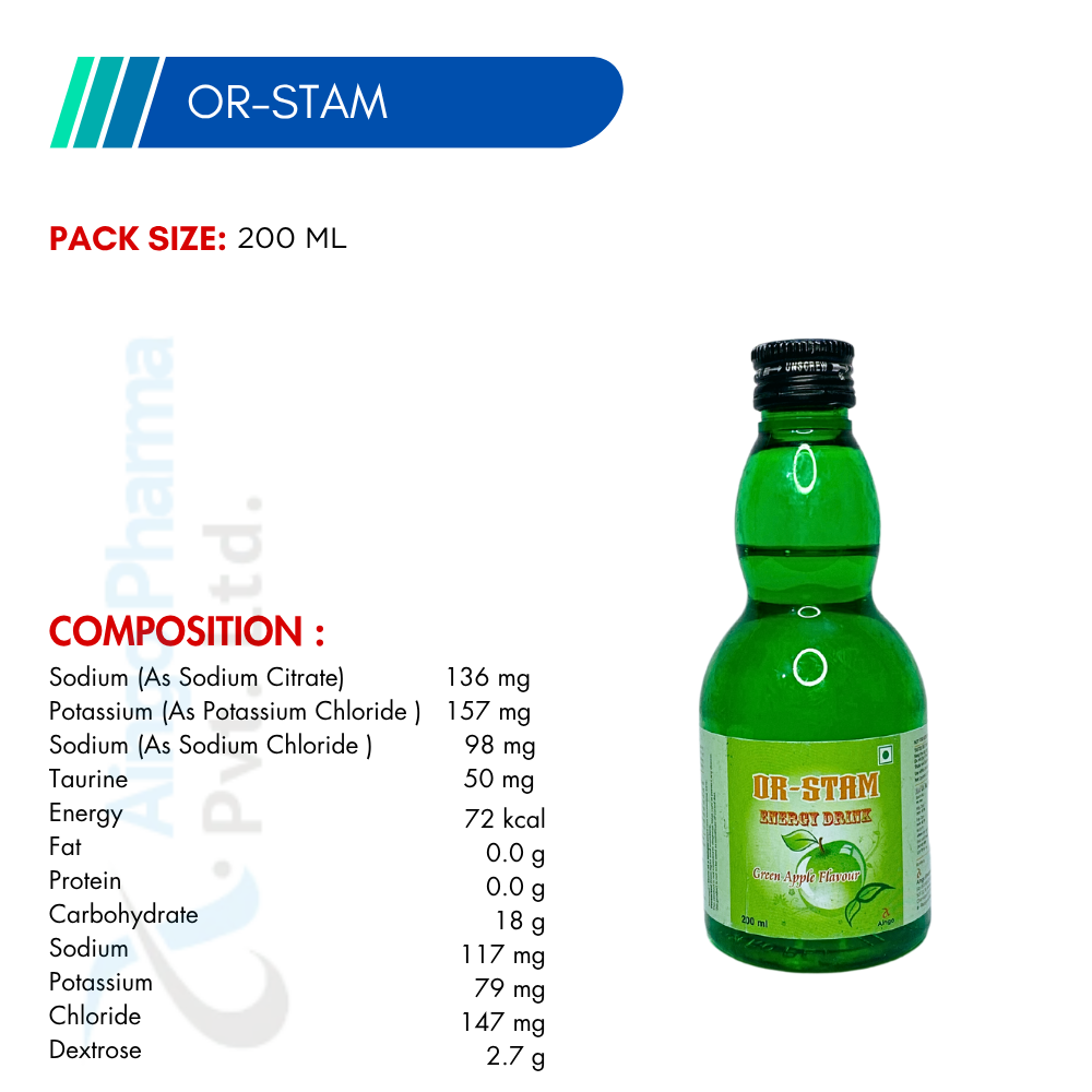 - OR-STAM Energy Drink is a hydrating and revitalizing green apple-flavoured electrolyte solution designed to restore energy and replenish lost electrolytes during dehydration, fatigue, or excessive sweating. […]