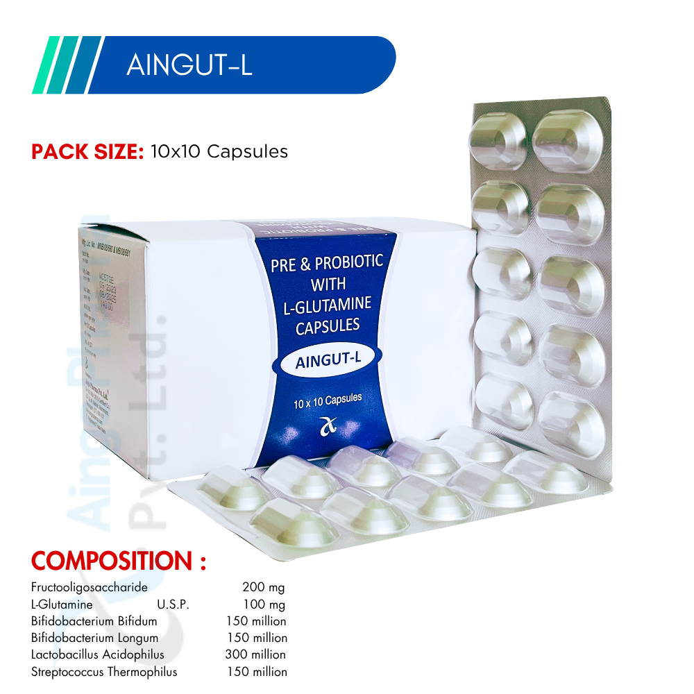 AINGUT-L is a potent blend of prebiotics, probiotics, and L-Glutamine designed to improve digestive wellness. With a mix of beneficial bacteria such as Bifidobacterium, Lactobacillus Acidophilus, and Streptococcus Thermophilus, it helps restore gut flora, boosts immunity, and enhances nutrient absorption. L-Glutamine aids in gut lining repair, especially beneficial in irritable bowel syndrome (IBS), post-antibiotic therapy, or chronic GI conditions.