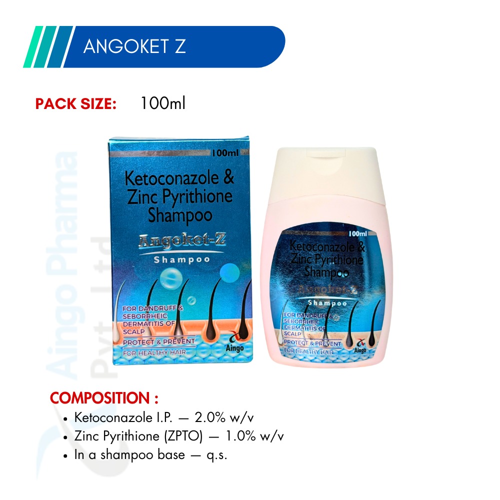 Composition: Ketoconazole I.P. – 2.0% w/v, Zinc Pyrithione (ZPTO) – 1.0% w/v in a shampoo base.