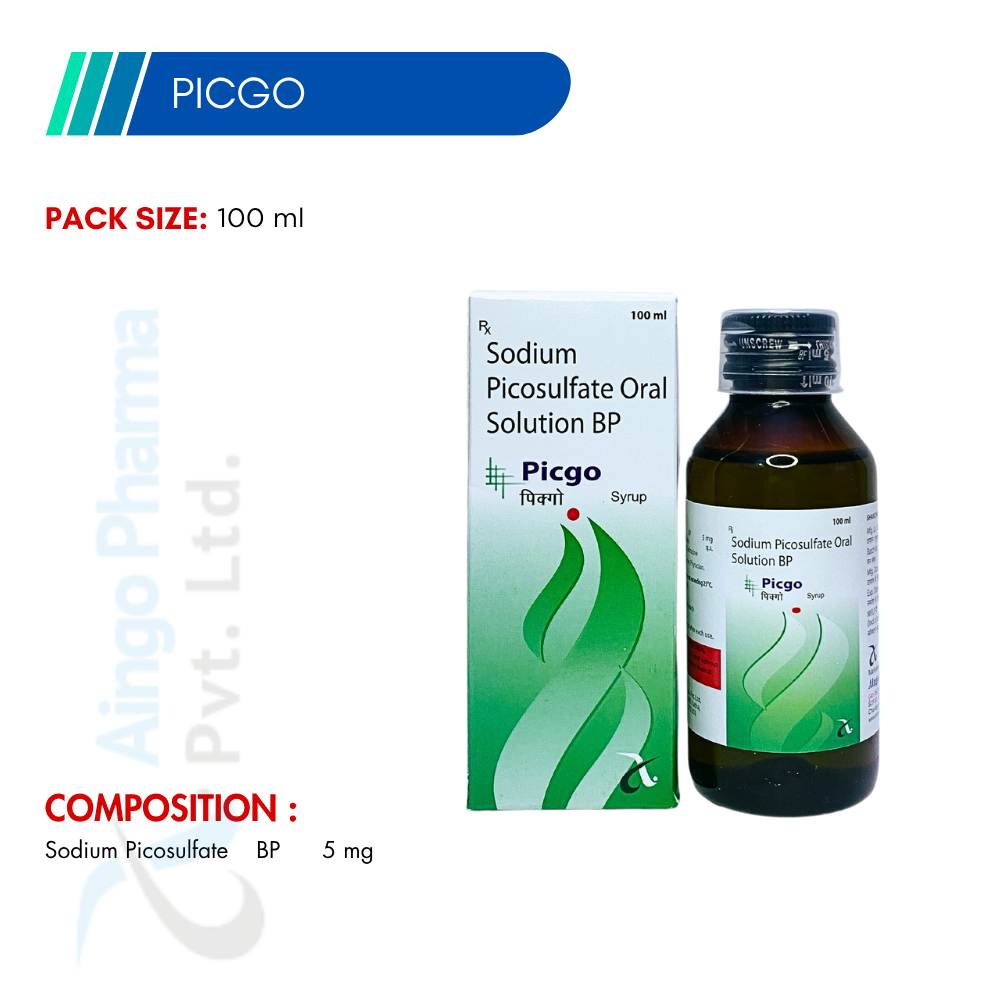 Picgo Syrup is a reliable and effective oral laxative formulation containing Sodium Picosulfate BP (5 mg) per 100 ml. Designed to provide relief from occasional constipation, it works by gently stimulating the muscles of the bowel, encouraging natural bowel movements without causing abdominal cramps or discomfort. Picgo is commonly prescribed by healthcare professionals due to its consistent performance and tolerability.