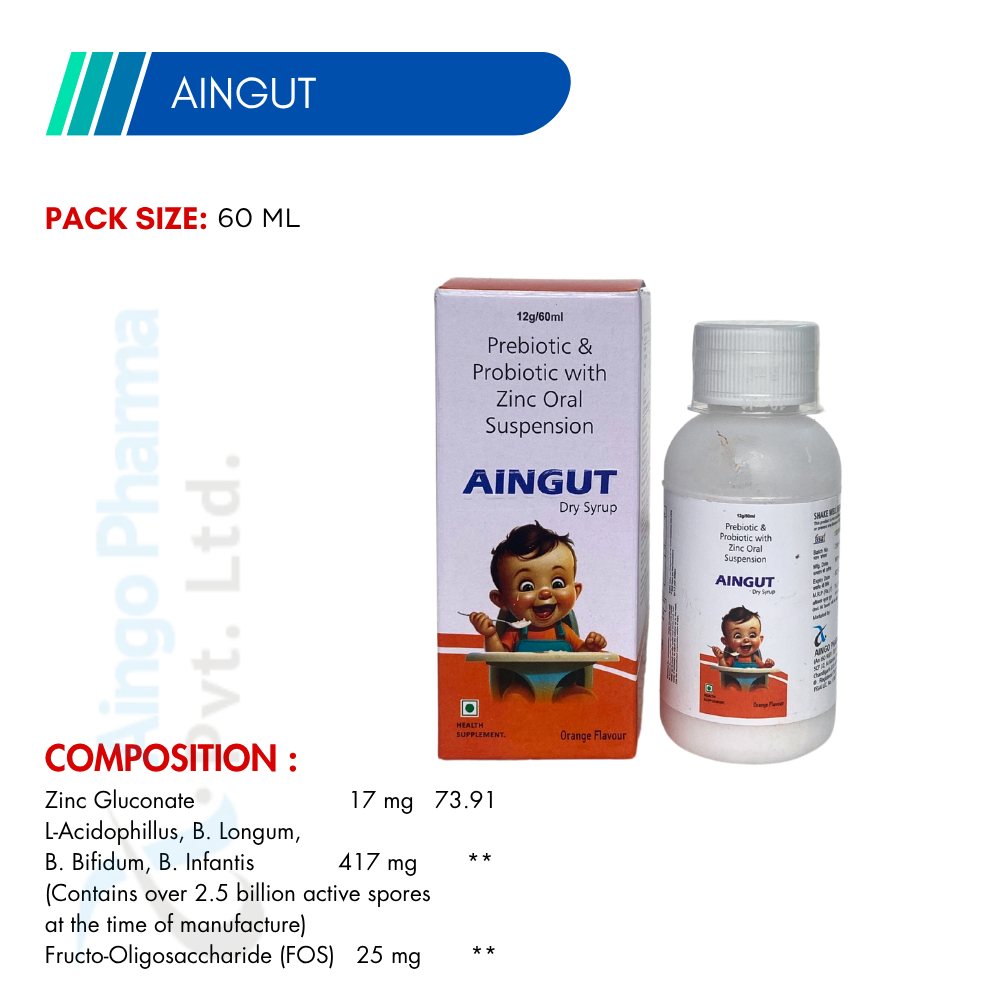 Aingut is a prebiotic and probiotic oral suspension containing Zinc and beneficial bacteria like Lactobacillus and Bifidobacterium. This formulation is designed to improve gut health, aid […]