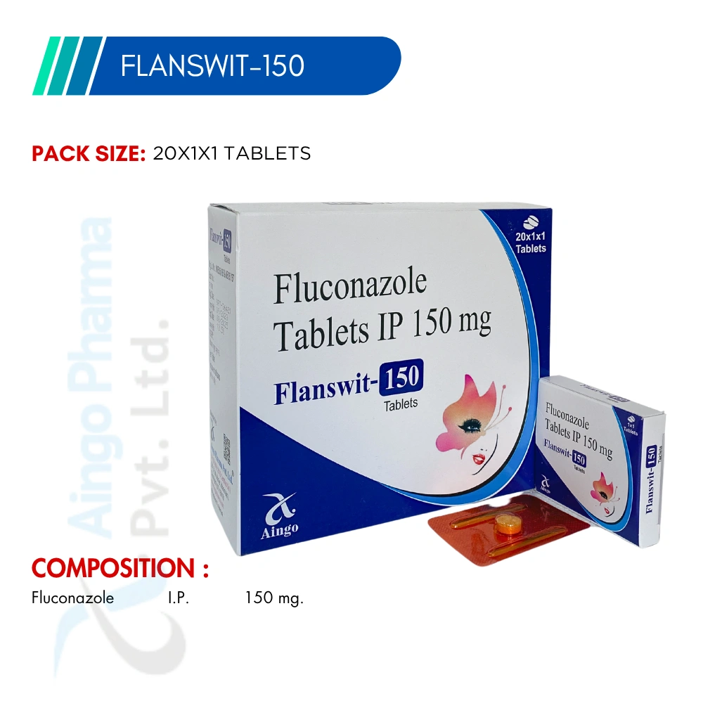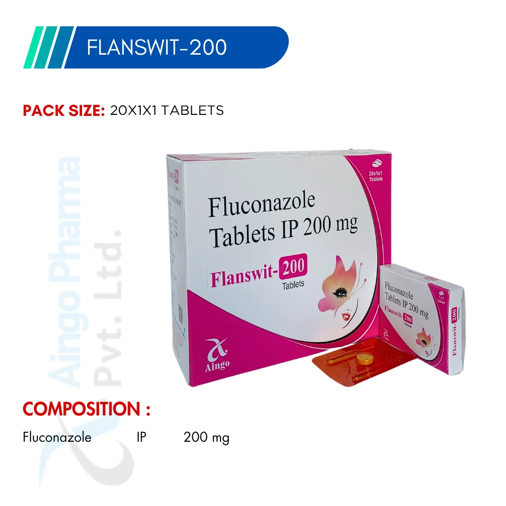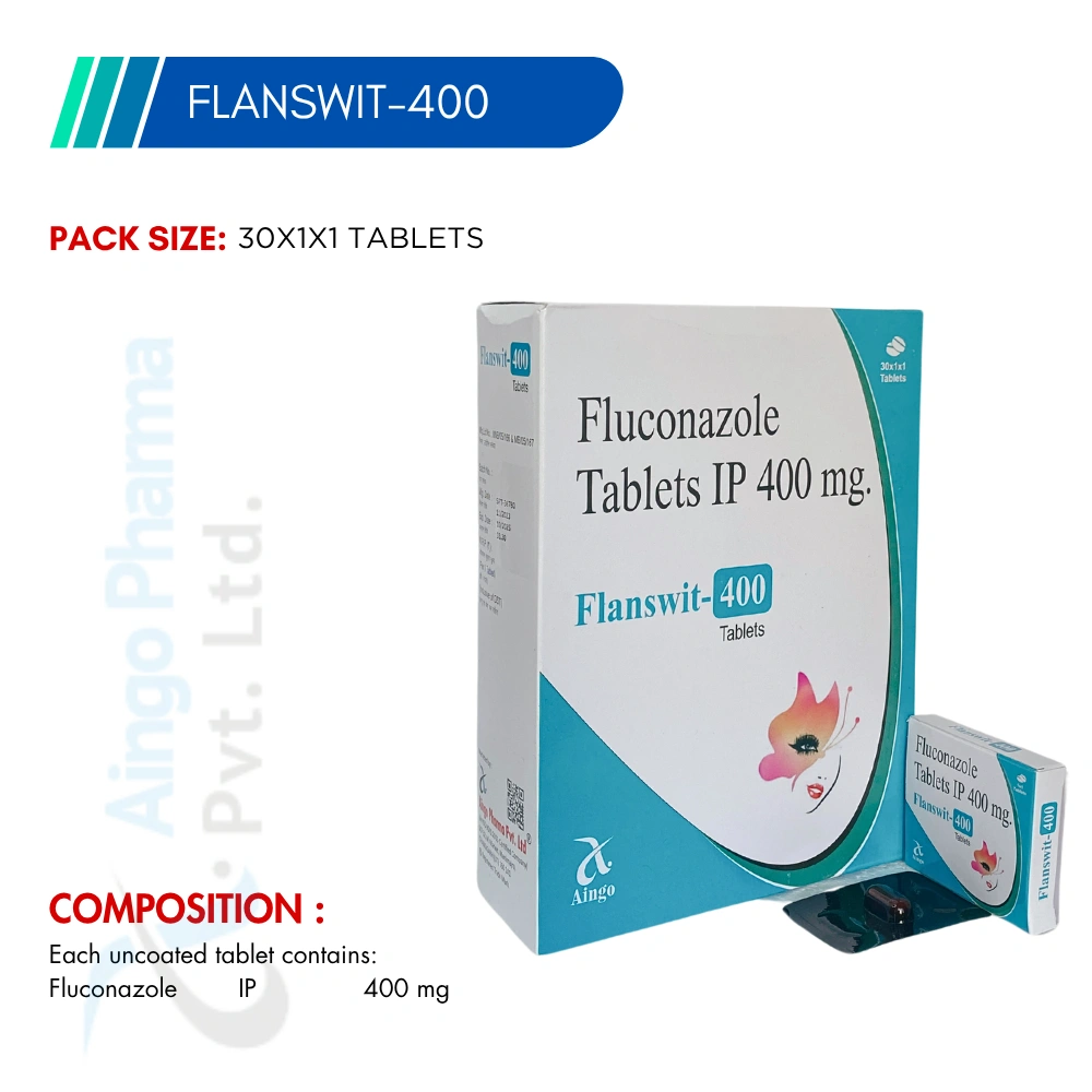 Flanswit-400 contains Fluconazole 400 mg, a potent antifungal medication used to treat a wide range of fungal and yeast infections. This tablet is effective against infections such as vaginal candidiasis, oral thrush, esophageal candidiasis, cryptococcal meningitis, and systemic candidiasis, which affect various organs, including the blood, brain, and lungs. Fluconazole works by inhibiting the synthesis of ergosterol, an essential component of fungal cell membranes, thereby stopping fungal growth and eradicating the infection.