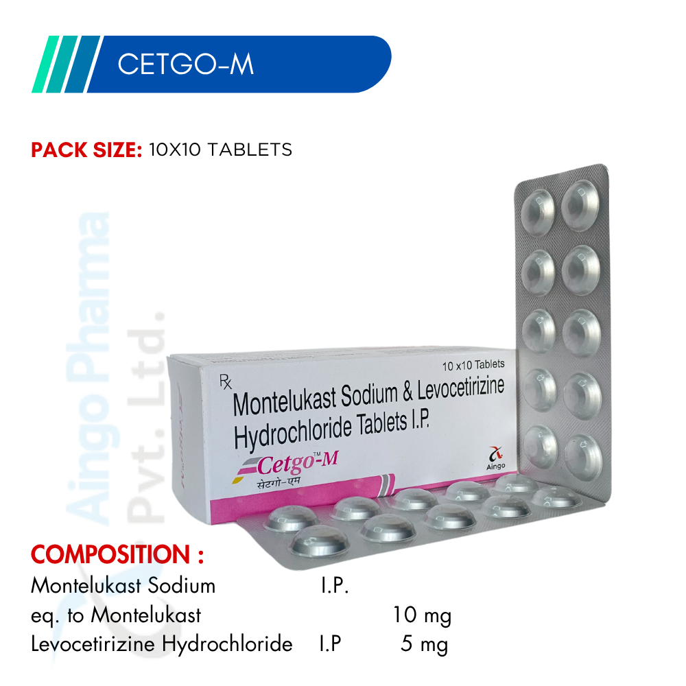 • CETGO-M Tablets – Montelukast Sodium 10 mg & Levocetirizine Hydrochloride 5 mg